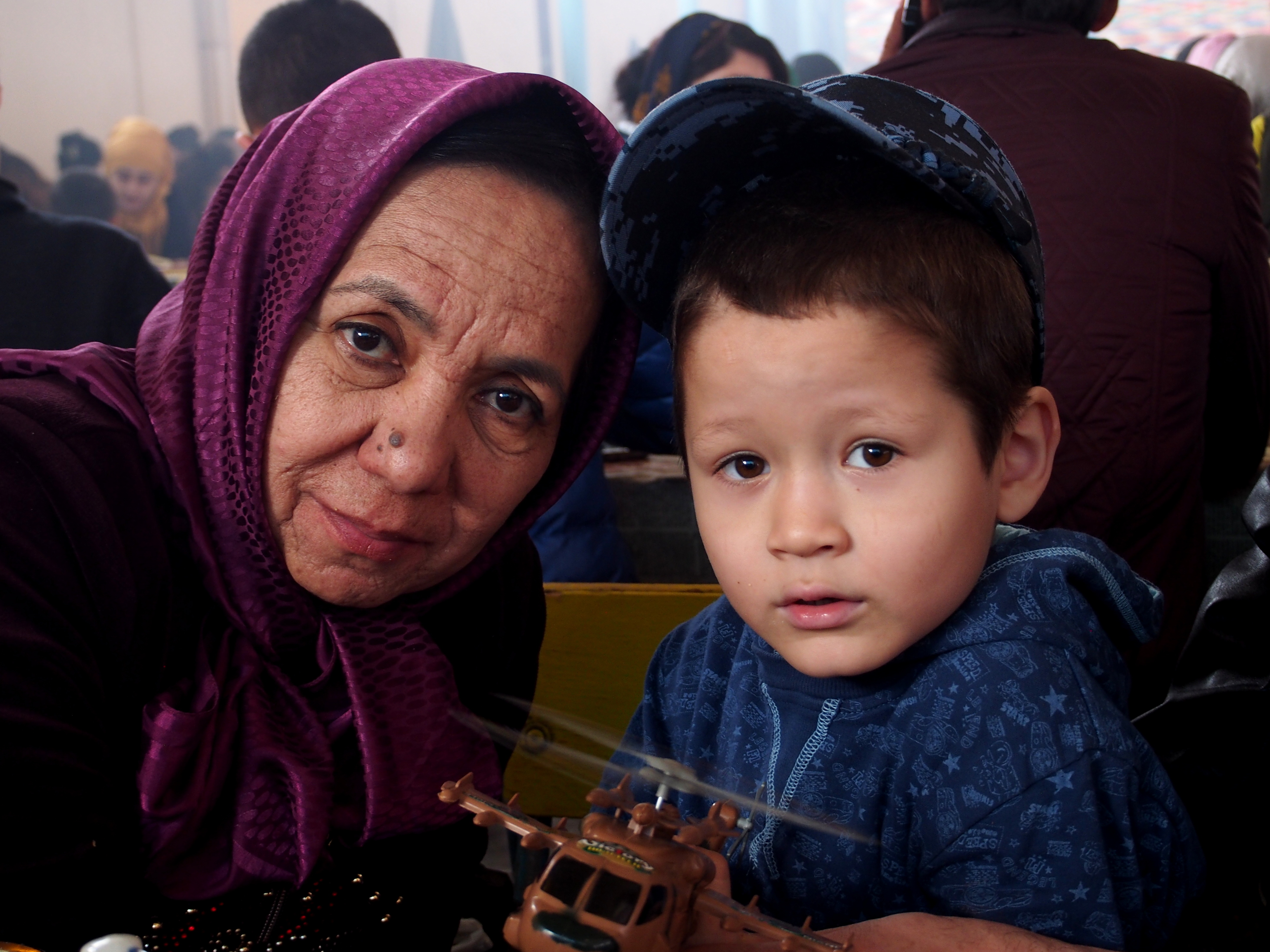 As I started my bread and coffee, the woman began chatting with me. When she learned where I am from, she switched from Russian to perfect English; she explained that she used to work at a railway institute, teaching English to Uzbek engineers. Between the woman and her husband, the boy was playing with a toy helicopter, too shy to look at me.