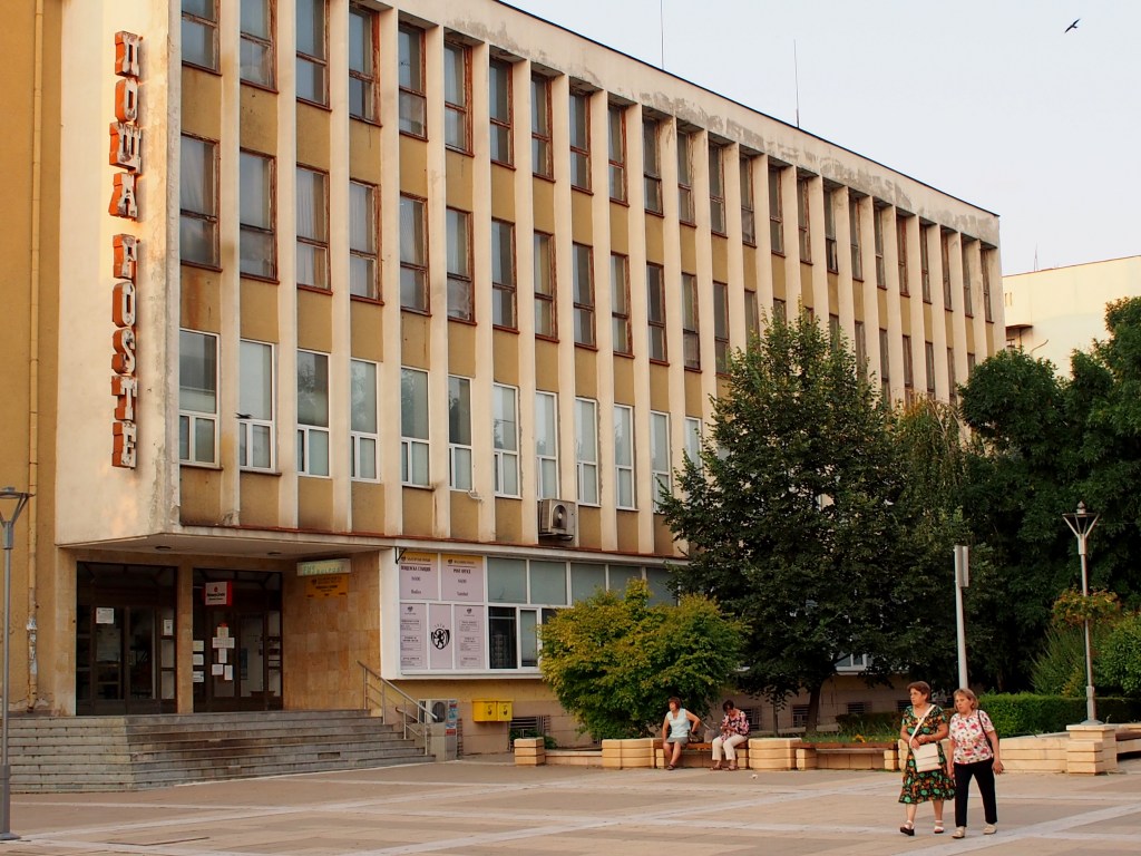 But still, in a few corners of Yambol survive some symbols of the Communist era – a left-behind but quite recent past. A brutalist building, just off the central Targovska street, still houses an art gallery. The square outside the gallery is only two minutes from the town’s old central post office, at one end of Rakovska street. And then there are all sorts of decades-old murals, mosaics and shop signs, which look more and more jarring with every sparkling new cafe that opens up next to them.