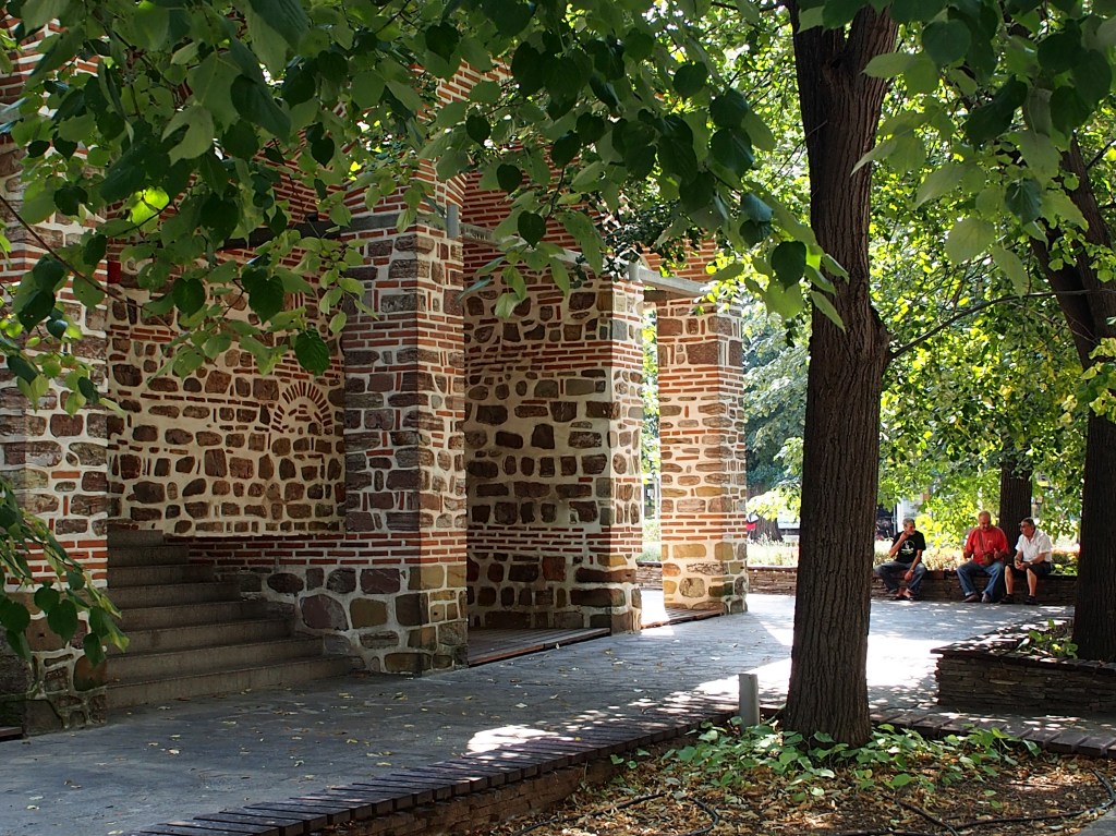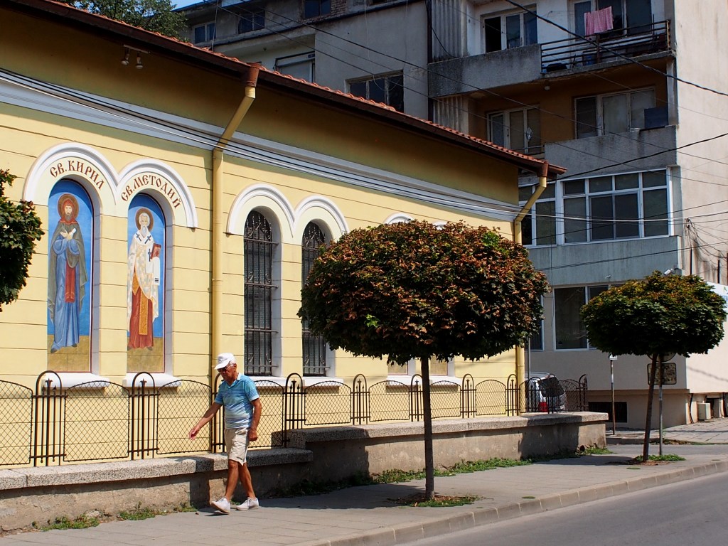 Yambol – one of the region’s main towns, with about 70,000 people – is full of colour, from its 19th century houses painted in bold reds and apricot orange, to its yellow Orthodox church, to the park in the centre of town covered by a canopy of dark green leaves. Colours mix on shop signs and graffiti, and in the brickwork of the 14th century Eski mosque – the second biggest in Bulgaria.